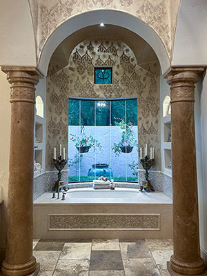 "Designer Toni Cates revives a residence tailoring to the elegance and integrity of the home's architecture, and impeccable historical detailing, which was enhanced with hints of modern touches."